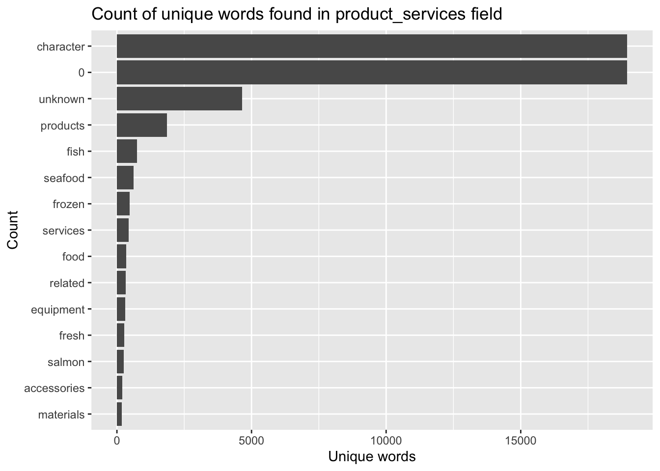 title = "Count of unique words found in product_services field")